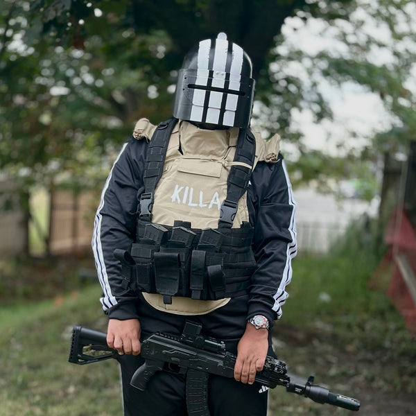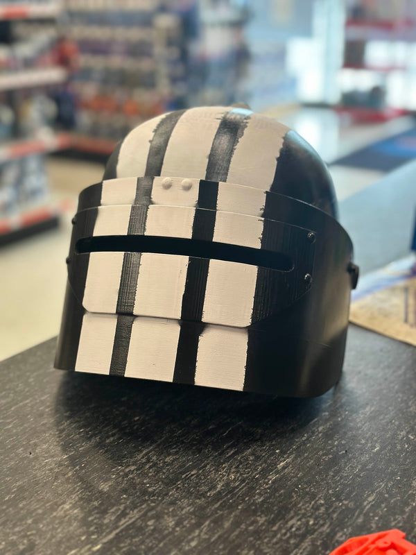A war torn replica of Killa's helmet from the game 'Escape From Tarkov' this helmet was printed out of PLA And holds up amazing! Plus it has that authentic look. Made with a working visor so its also functional