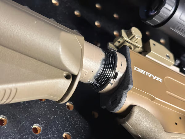 Mil-Spec Buffer tube plate for the TM-22 This buffer tube plate is specifically designed for the TM-22, replacing the original plate intended for commercial-spec buffer tubes This allows you to use a Mil-Spec buffer tube without modification of your original. It's available in two durable materials: PETG and Carbon Fiber PETG, offering superior strength and reliability.